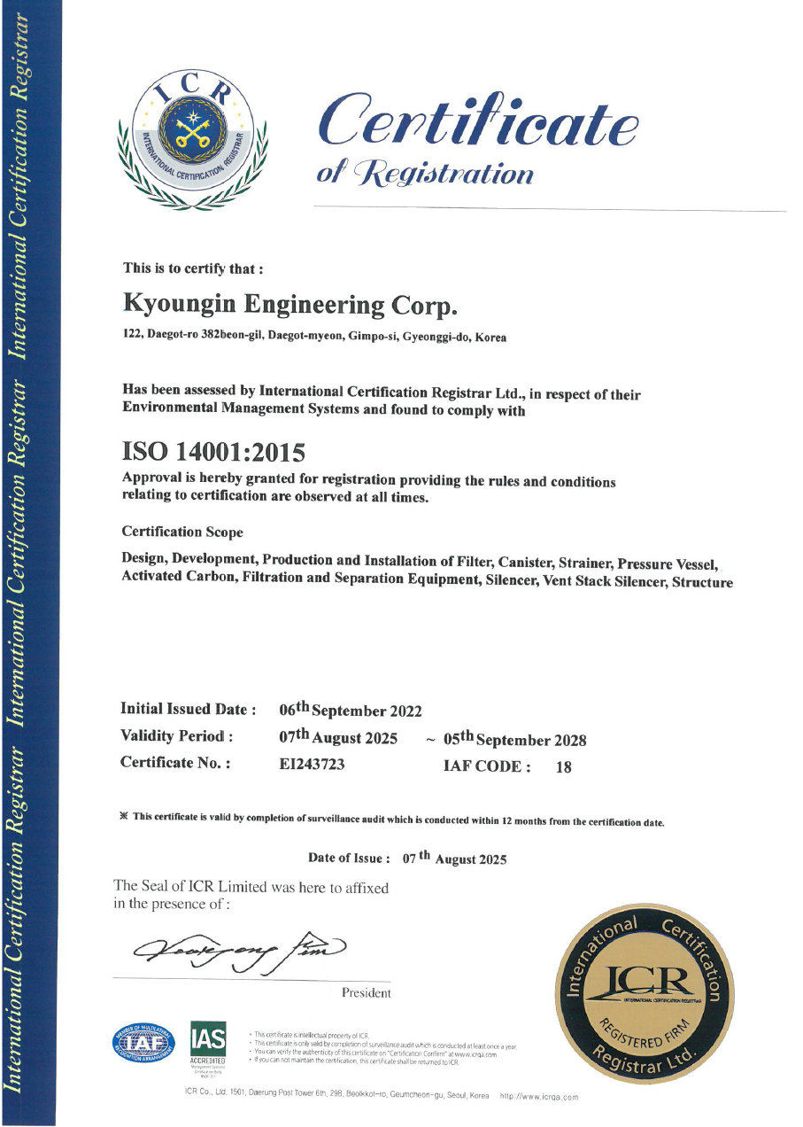 ISO 14001 인증으로 환경 보호를 우선시하는 지속가능한 경영을 실천합니다.